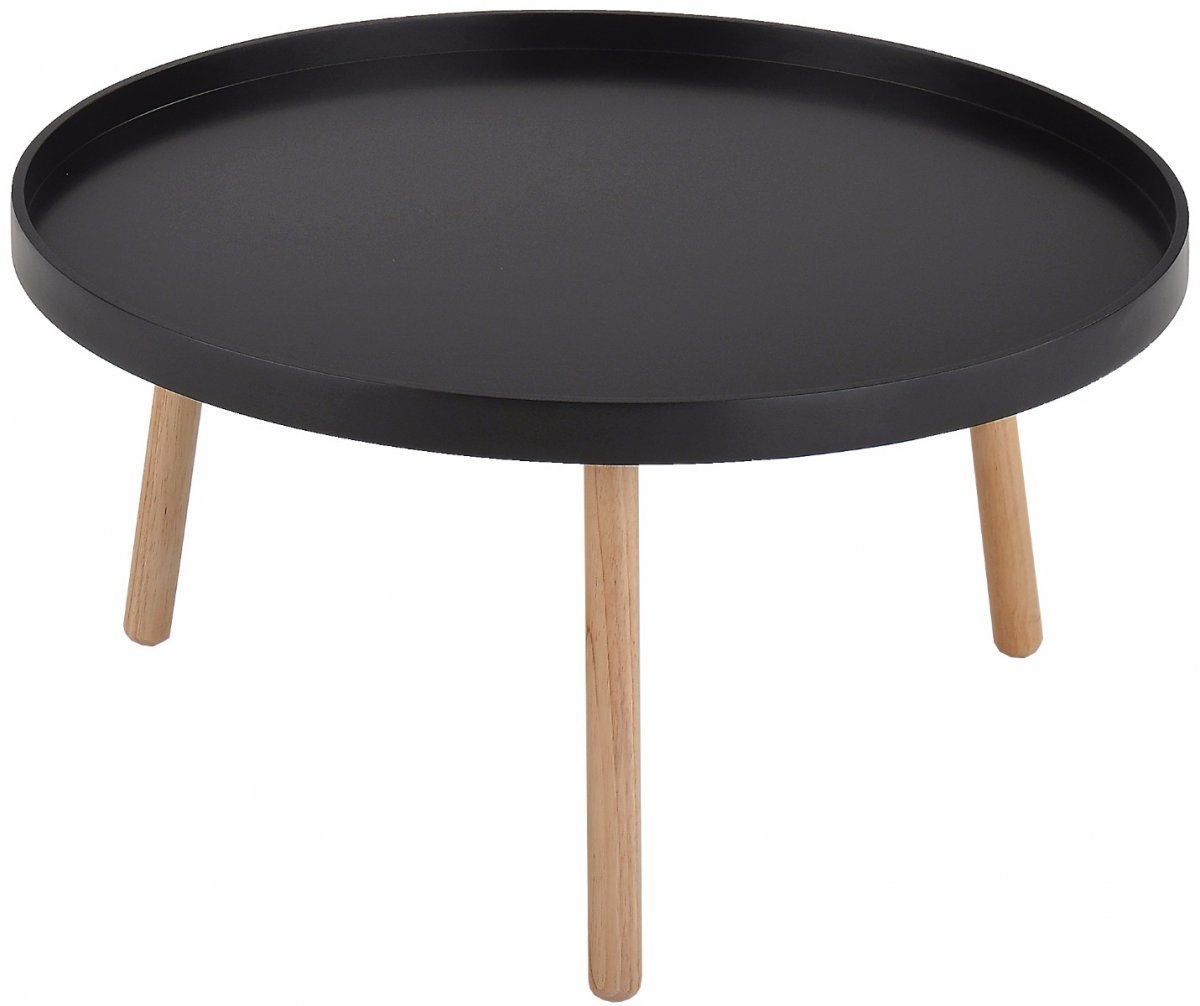 Moderni pyöreä Solo-1 sohvapöytä puujaloilla musta kansi, jalat luonnonväriset puuta kansi mdf 79×40