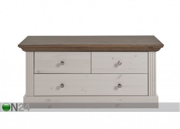 Matala kaappi on valmistettu laadukkaasta, uusiokäytetystä männystä – runko on viimeistelty valkoisella petsillä,… Lue lisää »