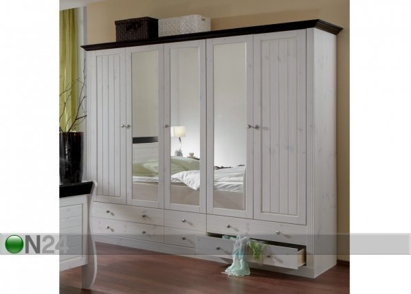 Männystä valmistettu vaatekaappi – viimeistelty valkoisella petsillä, karniisi tummalla petsillä – kuusi metallikiskoilla… Lue lisää »