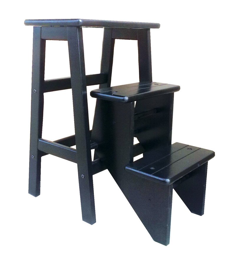 Step In -tikastuolissa on 2 asekelmaa ja päällystaso. Askelmat saa helposti taitettua piiloon tason alle. Mustaksi maalattua massiivipuuta. Tilaa nyt!