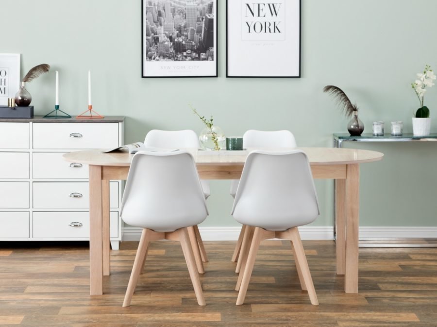 Kirjoita ensimmäinen arvio tuotteelle “Strömstad Pöytä 140 Luonnonvärinen + 4 Peace Tuolia Valkoinen/Tammi”
