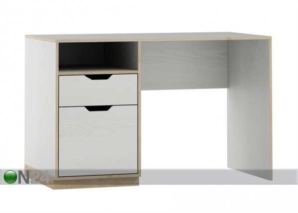 Kirjoituspöytä on valmistettu laminoidusta kalustelevystä – laatikko liukuu metallikiskoilla – oven takana ei… Lue lisää »