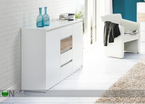 Lipasto on valmistettu fooliumpinnoitetusta kalustelevystä – neljä laatikkoa liukuvat metallikiskoilla – molemman oven… Lue lisää »