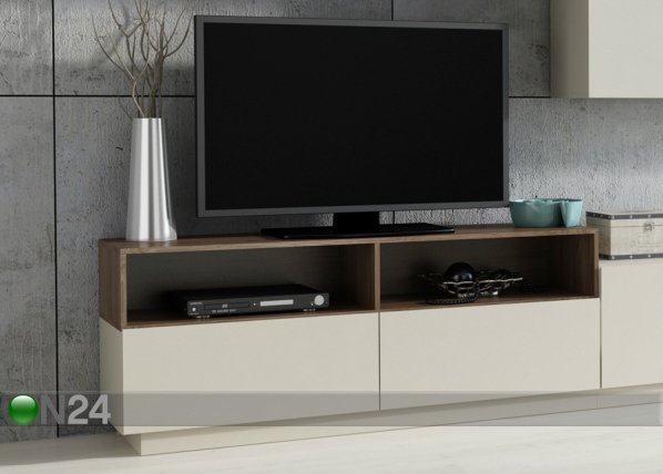 Tv-taso on valmistettu laminoidusta lastulevystä – laatikot liukuvat metallikiskoilla – viimeistely: Sangallo jalava/kashmiiri… Lue lisää »