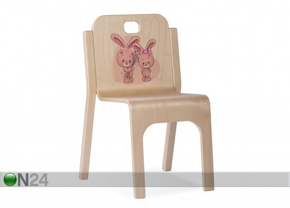 Tuoli on valmistettu taivutetusta koivuvanerista – viimeistelty luonnonlakalla – selkänojaan on painettu jäniskuva… Lue lisää »