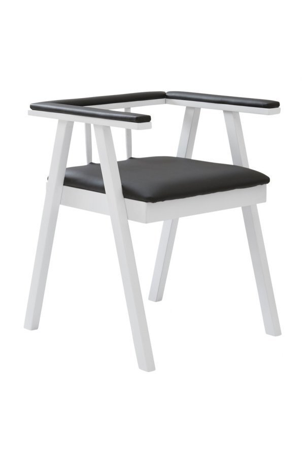 Moderni käsinojallinen tuoli, jossa skandinaavinen design. Pehmustettu istuin ja käsinojat tekevät istumisesta miellyttävää. Tuoli sopii ruokapöydän ääreen tai pieneksi nojatuoliksi eteiseen tai olohuoneeseen. Materiaali: Puuta, polyuretaania ja polyesterivanua. Koko: Korkeus 70 cm, leveys 54 cm, syvyys 55 cm. Kuvaus: Maalattu tuoli massiivipyökkiä. Istuimen ja käsinojien päällinen polyuretaania. Täyte polyesterivanua. Vinkki: Hanki erityylisiä tuoleja ruokapöydän ympärille.