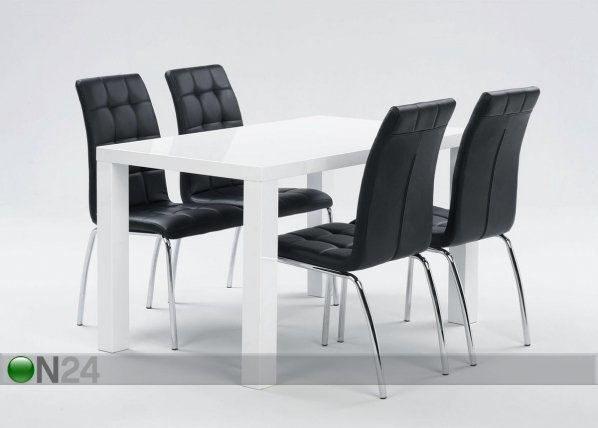 Ryhmään sisältyy pöytä ja neljä tuolia – ruokapöytä on valmistettu korkeakiiltoisesta MDF-levystä -… Lue lisää »