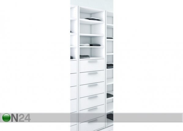 Laatikoilla varustettu hyllystö on valmistettu kalustelevystä – kuusi metallikiskoilla liukuvaa laatikkoa – kolme… Lue lisää »