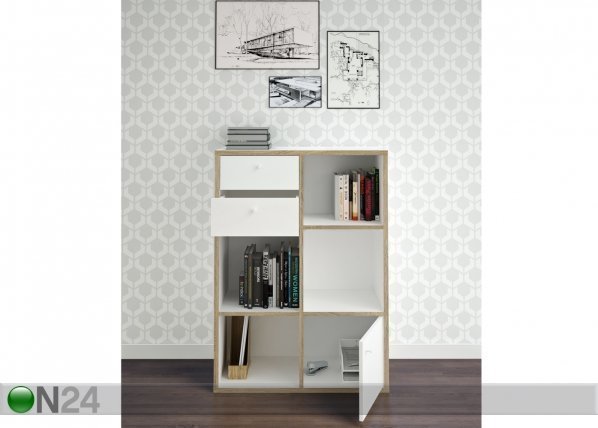 Hyllystö on valmistettu fooliumpinnoitetusta kalustelevystä – hyllystössä on kaksi laatikkoa ja yksi ovi… Lue lisää »