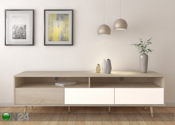Tv-taso on valmistettu laadukkaasta kalustelevystä – viimeistely: tammi/valkoinen korkeakiilto – kolme metallikiskoilla liukuvaa… Lue lisää »