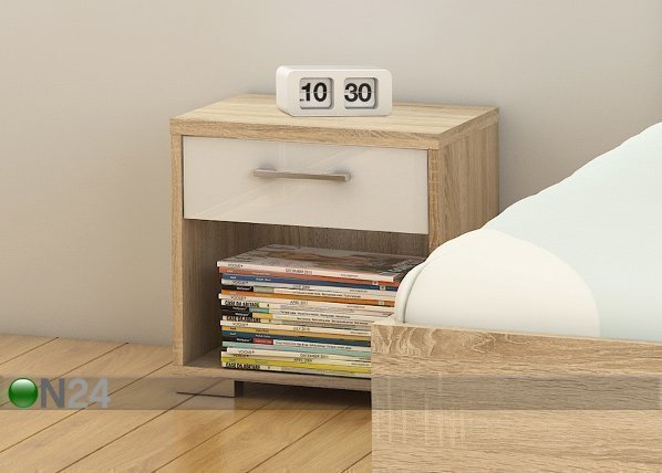 Yöpöytä on valmistettu kalustelevystä – laatikko liukuu metallikiskoilla – vedin ja jalat ovat… Lue lisää »