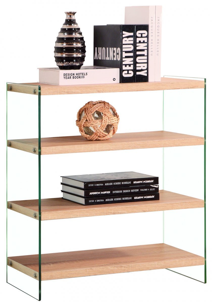 Valby 19 -hyllyssä on neljä tasoa. Hyllyjen sivut ovat karkaistua lasia. Väri: vaalea antiikkitammi.Tilaa!
