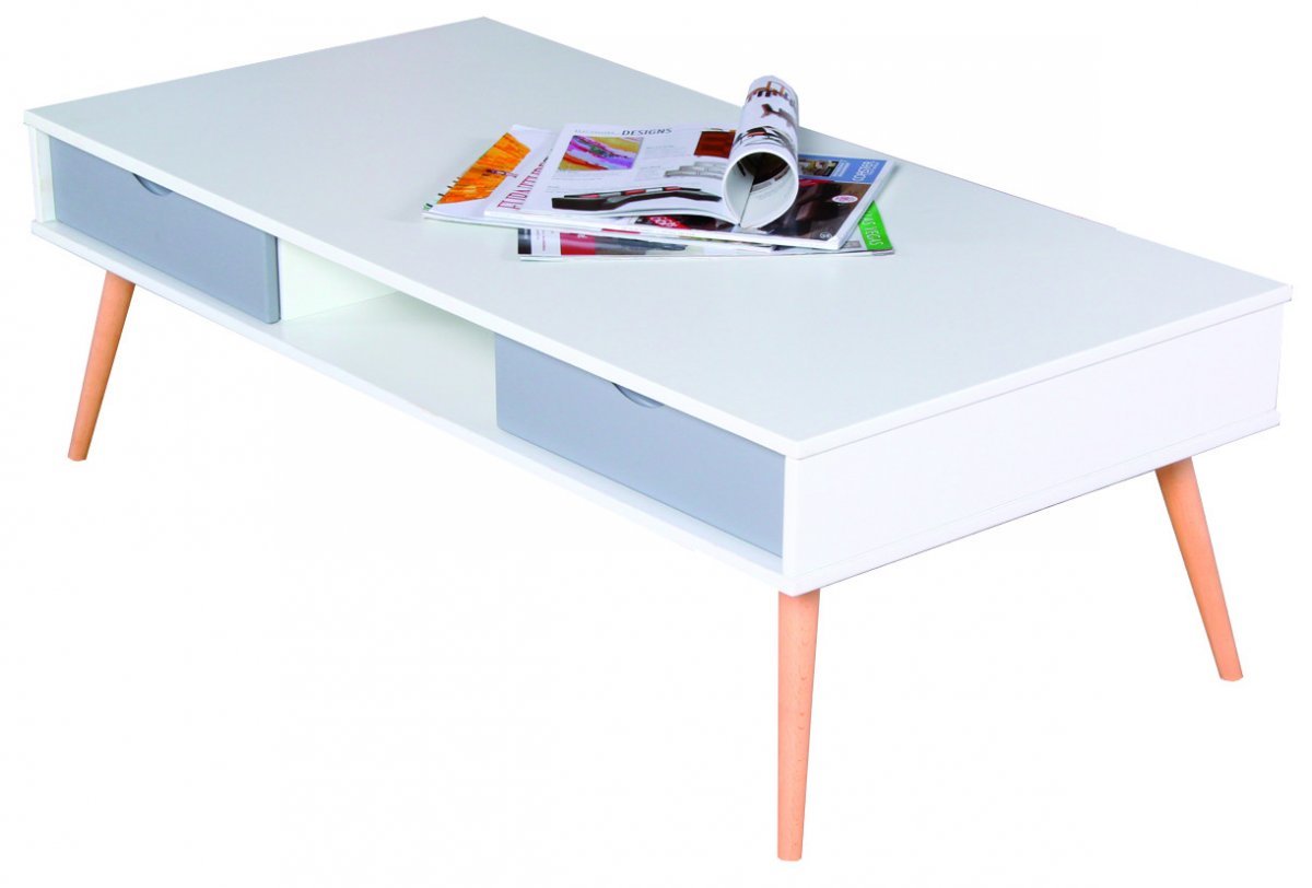 Vaxholm-sohvapöydässä on retrotyyliä! Pöydässä on avotila, 2 vetolaatikkoa + pyökkipuujalat. MDF-levyä. Tilaa Vaxholm-kalusteet Hobby Hallista!