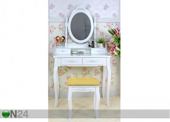 Kaunis antiikkityylinen kampauspöytä – toimitukseen sisältyy kampauspöytä, peili ja pehmustettu rahi – valmistettu… Lue lisää »