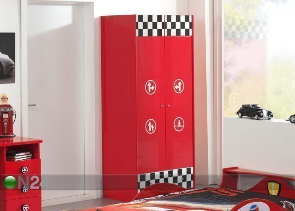Vaatekaappi on valmistettu kalustelevystä – viimeistely: punainen korkeakiilto – ovien takana on kaksi… Lue lisää »