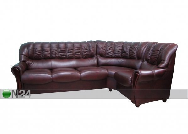 Kulmasohvan istuintyynyt, selkänoja ja käsinojien päälliset ja sisäsivut on verhoiltu aidolla nahalla -… Lue lisää »