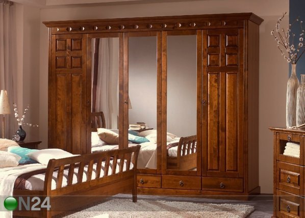 Täyspuinen peiliovilla varustettu vaatekaappi – kaapin oikean- ja vasemmanpuoleisen oven takana on ylähylly… Lue lisää »