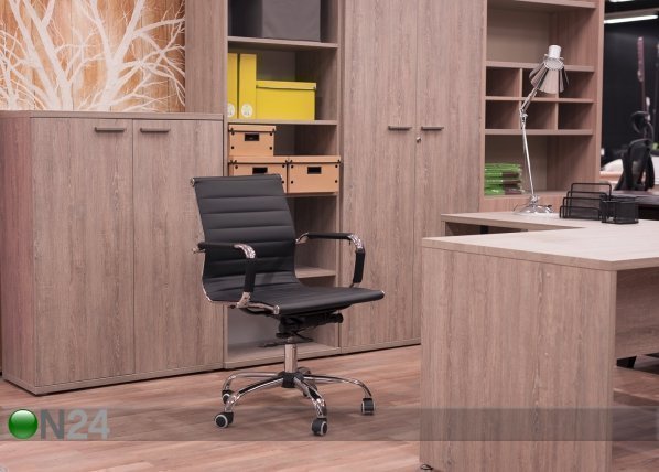 Mukava ja moderni konttorituoli – istuin ja selkänoja on verhoiltu mustalla keinonahalla -… Lue lisää »