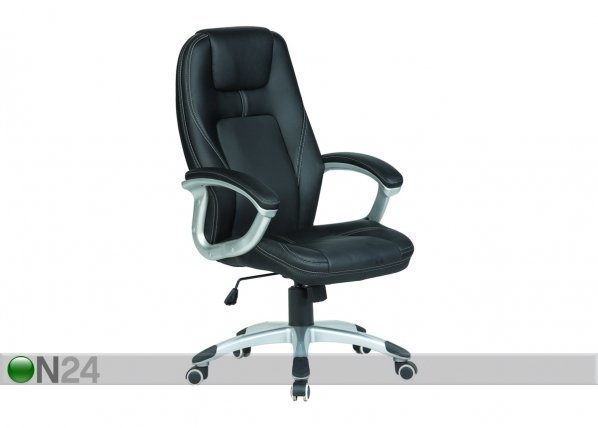 Konttorituolin istuin ja selkänoja on verhoiltu mustalla keinonahalla, pehmusteena vaahtomuovi – käsinojat on… Lue lisää »