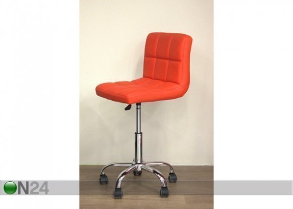 Pyörillä varustettu työtuoli on verhoiltu keinonahalla – istuinkorkeus on säädettävissä kaasupumppumekanismilla – jalkaristikko… Lue lisää »