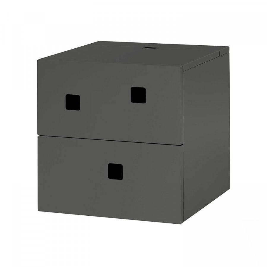 Peep S1 yöpöydässä on 2 laatikkoa ja pieni lokero johon johdot voi piilottaa. Vaimentimien ansiosta laatikot sulkeutuvat pehmeästi.