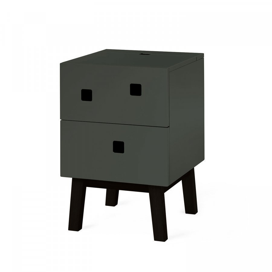 Peep S1 yöpöydässä on 2 laatikkoa ja pieni lokero johon johdot voi piilottaa. Vaimentimien ansiosta laatikot sulkeutuvat pehmeästi.
